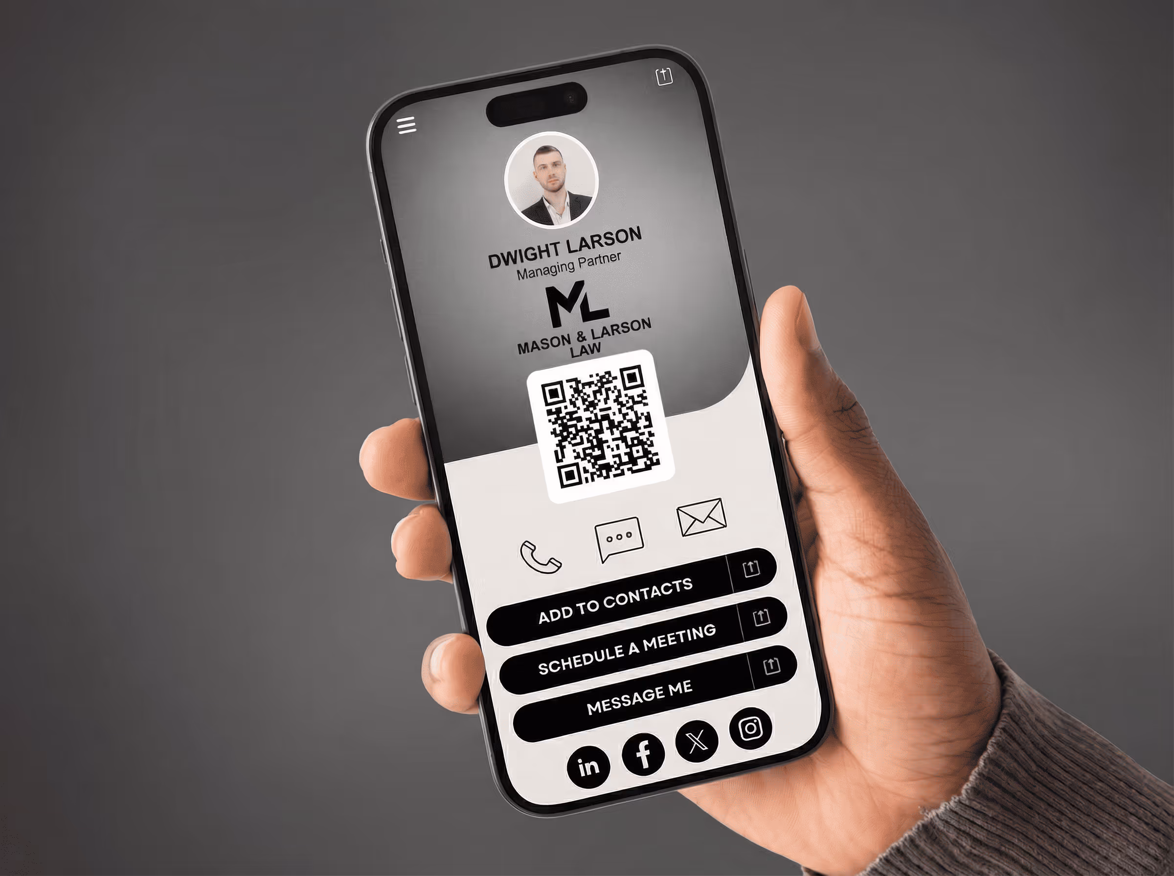 Share attorney contact details securely and memorably. From client meetings to court appearances, make every introduction count.